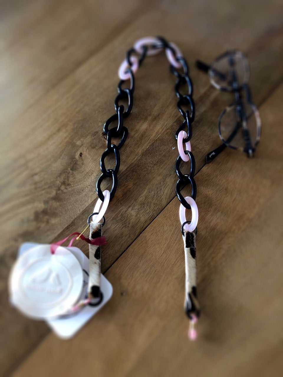 Catena per occhiali in resina, alluminio e cavallino con bollatina Maman et moi.