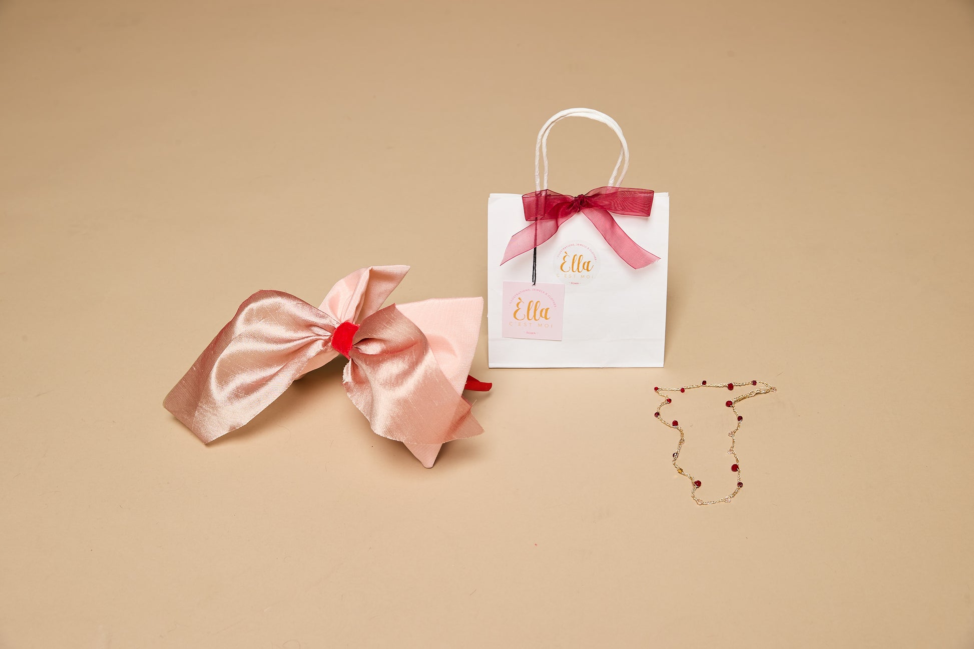 Cerchietto hand made con grande fiocco in seta color oro rosa