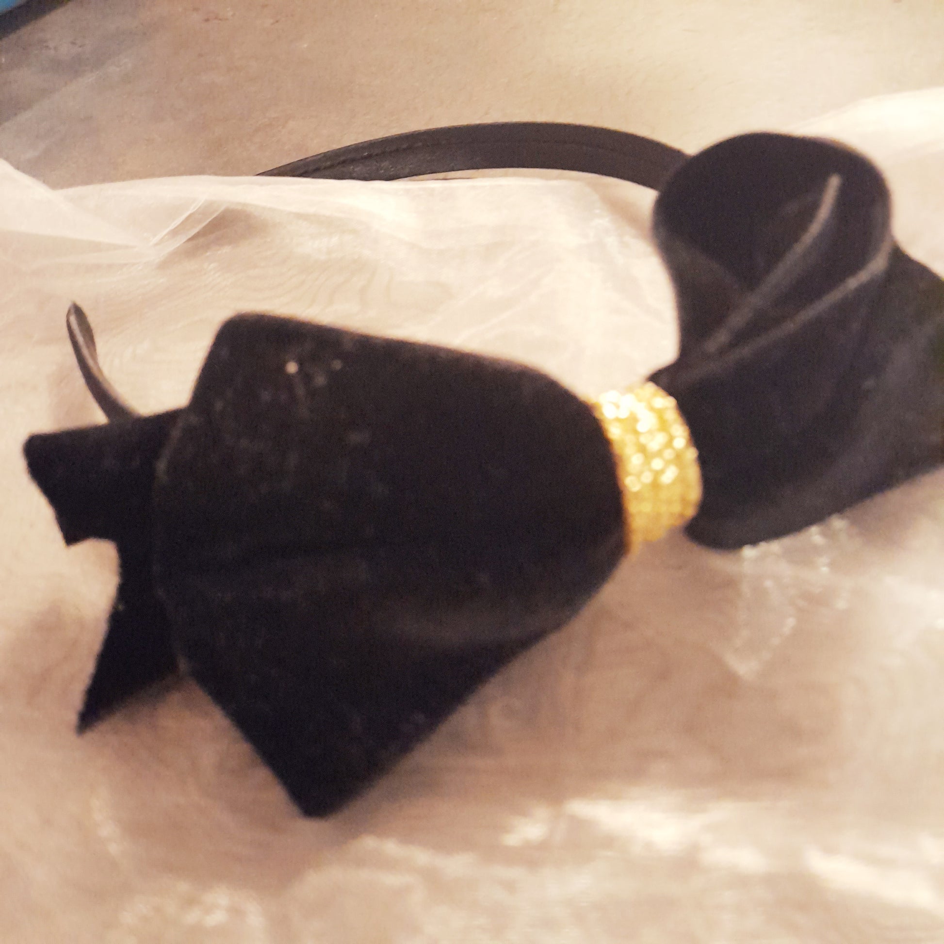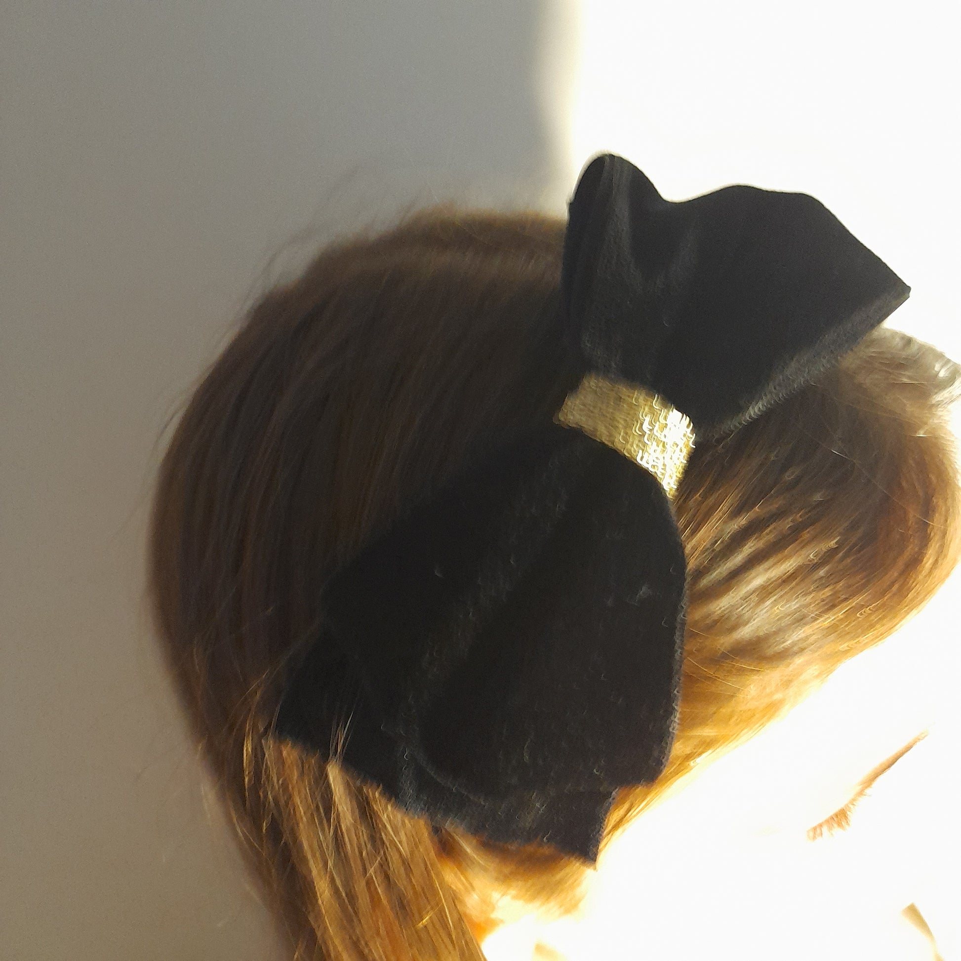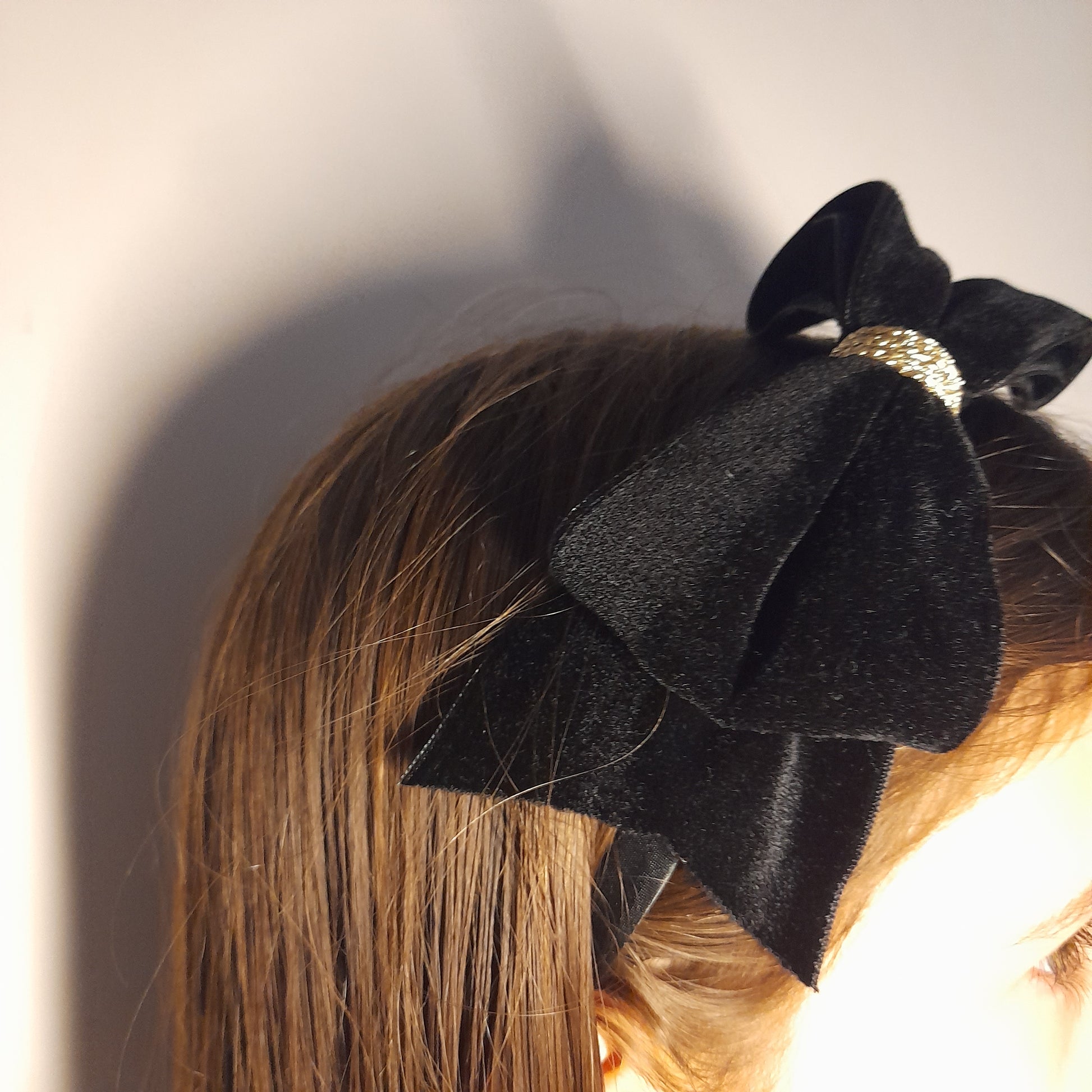Cerchietto in raso con fiocco in velluto di puro cotone