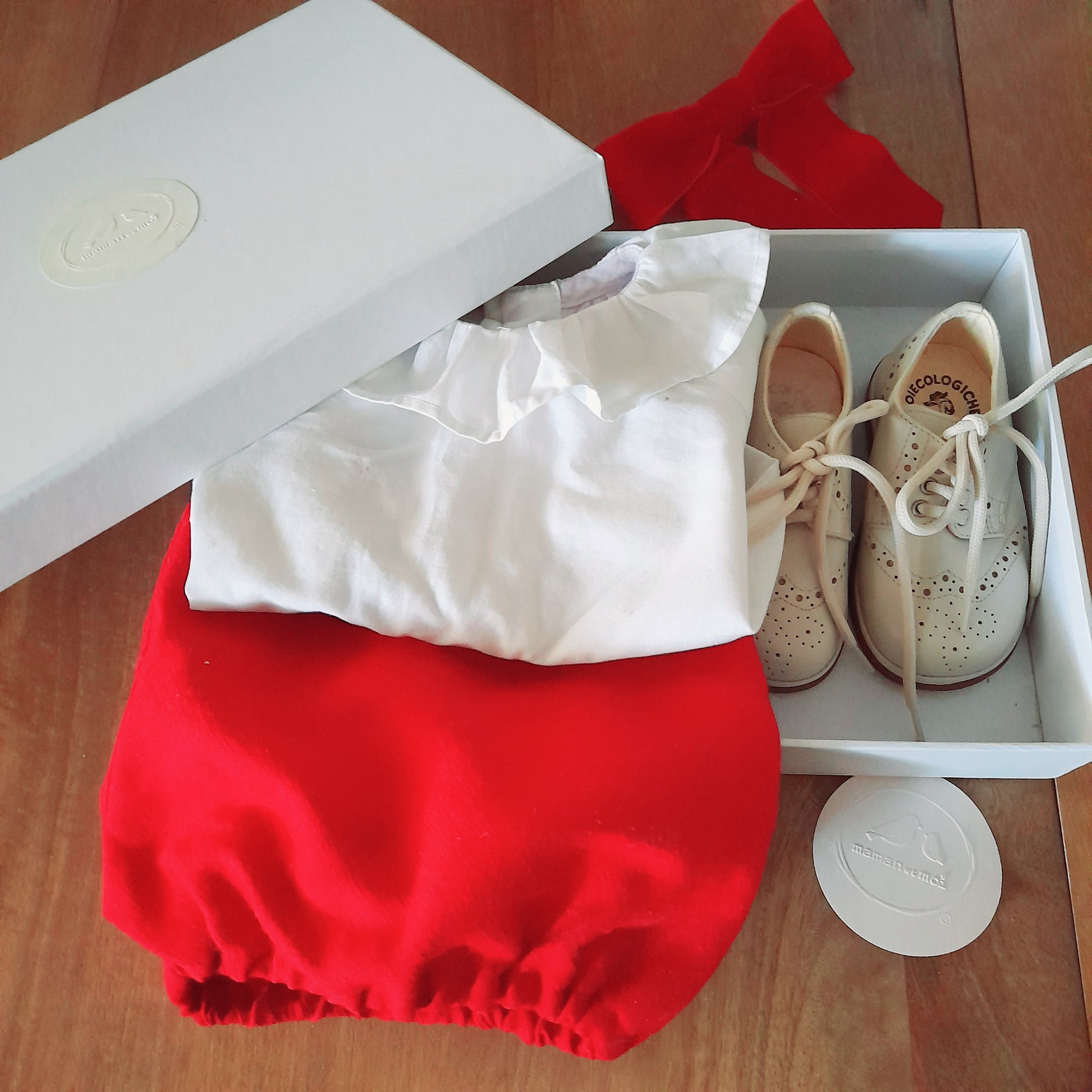 Xmas Gift box con Battista Brassière volant in puro cotone e Bloomer in pura lana vergine di mamanetmoi