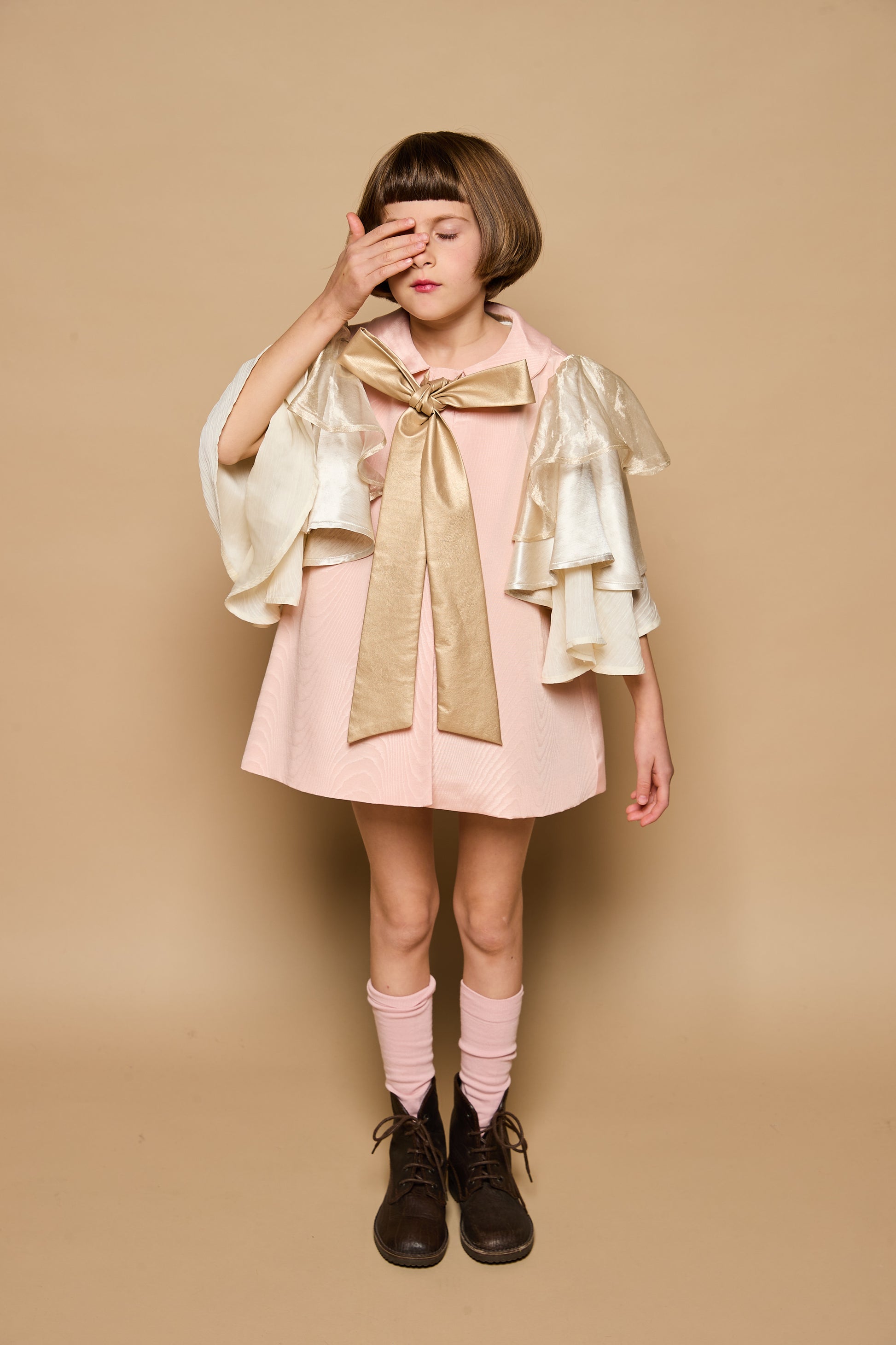 - Chiusura anteriore con nastro a fiocco in ecopelle oro