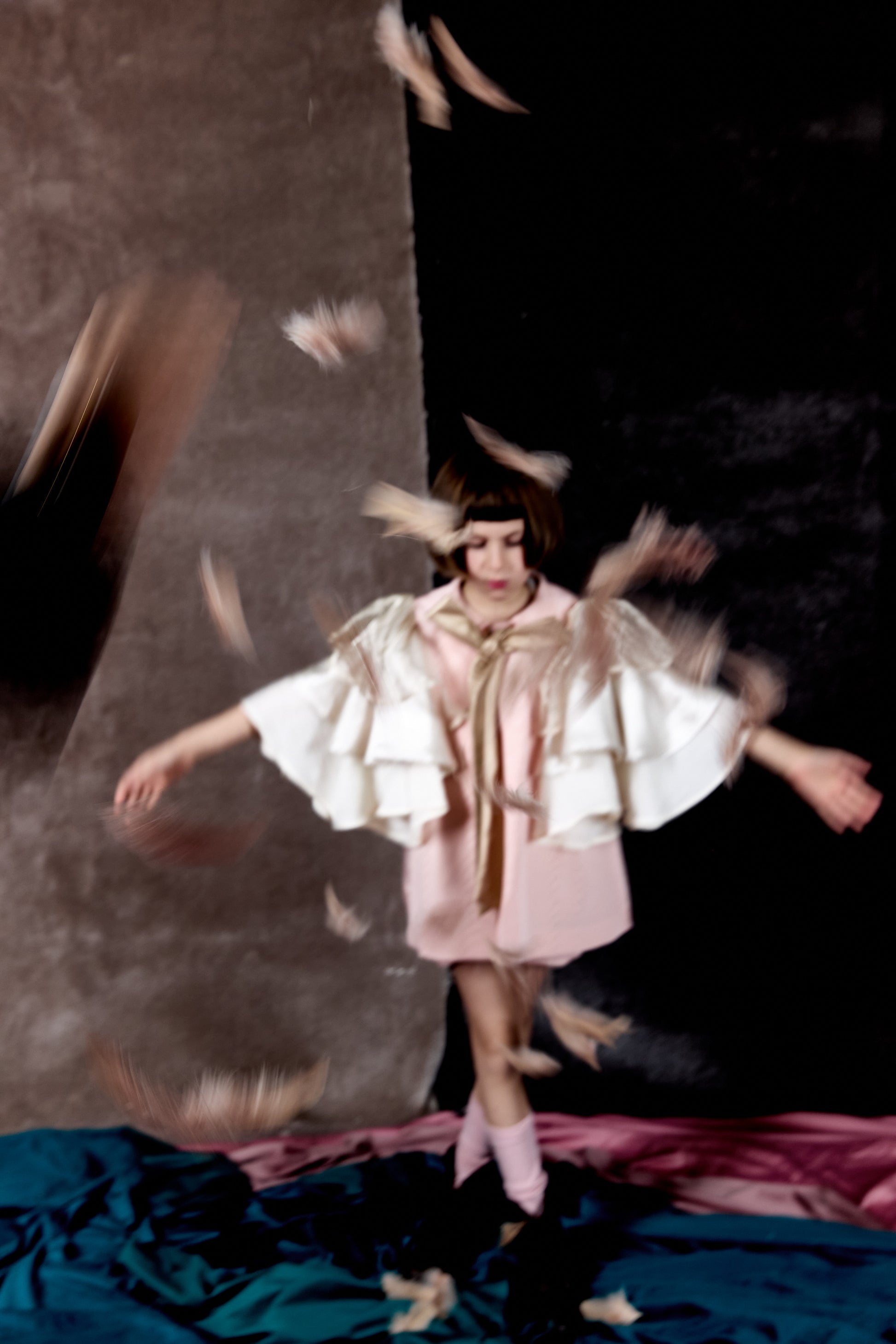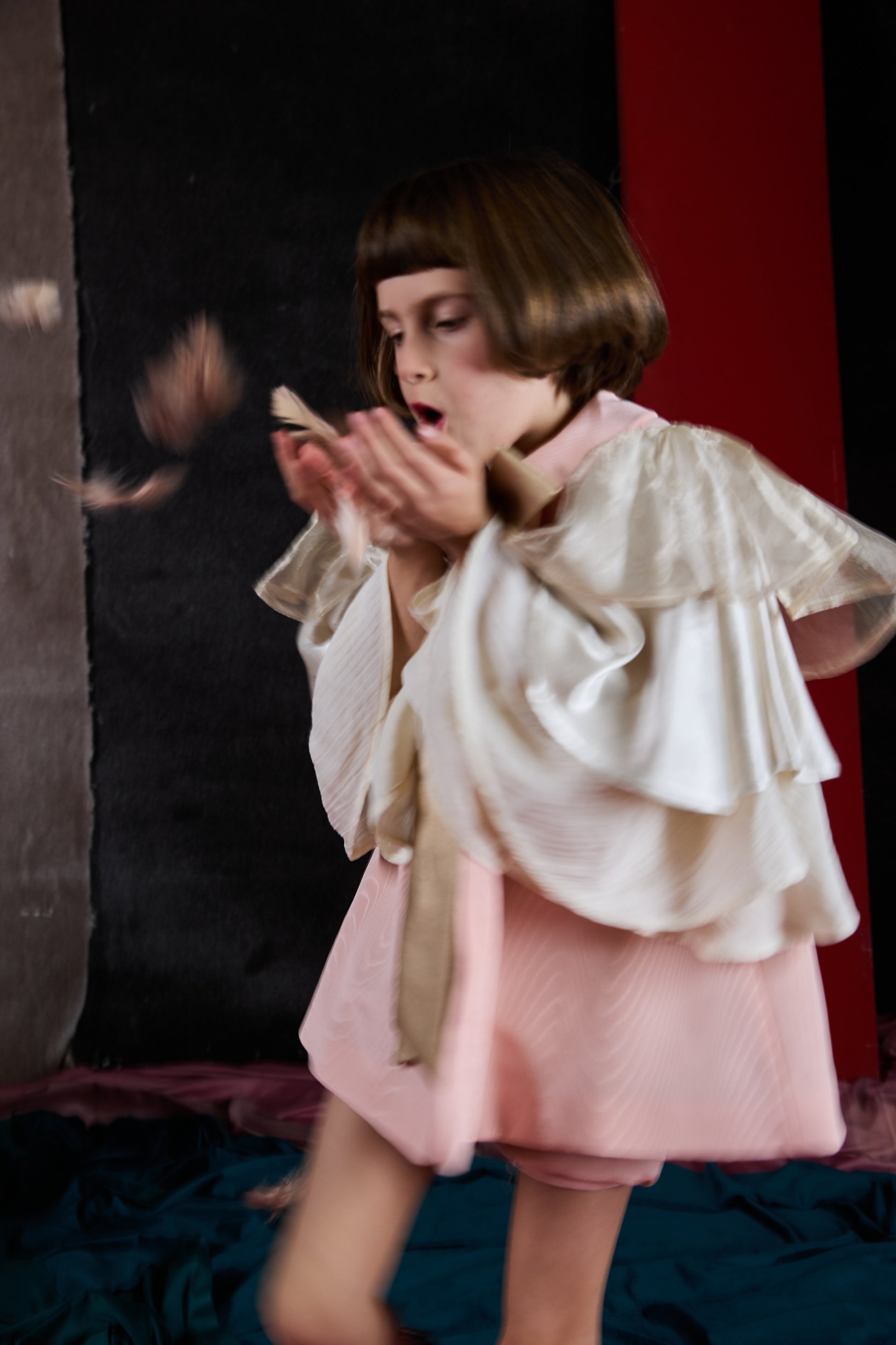 - Maniche a farfalla a tre strati in organza e seta
